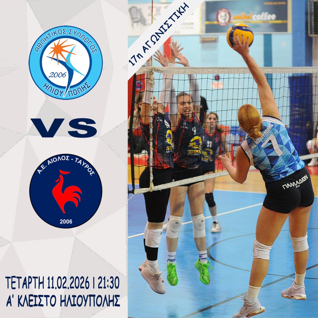Η γυναικεία μας ομάδα, την Τετάρτη 11/02/2026 στις 21:30 για την 17η αγωνιστική του Πρωταθλήματος υποδέχεται στο Α’ Κλειστό Ηλιούπολης την αντίστοιχη ομάδα ΑΕ Αίολος-Ταύρος.