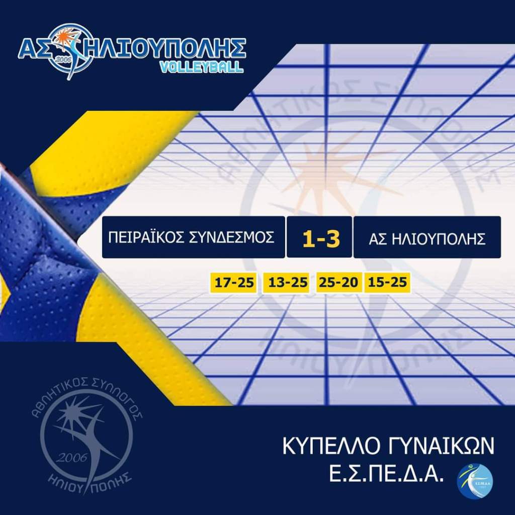 🏐 🏆 🏐 ΑΠΟΤΕΛΕΣΜΑΤΑ ΑΓΩΝΩΝ 🏐🏆 🏐☑️ΓΥΝΑΙΚΕΣΓια την 1η αγωνιστική του Κυπέλλου Γυναικών Ε.Σ.ΠΕ.Δ.Α. η ομάδα μας, σε νοκ-αουτ αγώνα, νίκησε με 3-1 σετ την ομάδα Πειραϊκός Σύνδεσμος στο ΔΓ Πειραιά Π.Σαλπέας και πήρε την πρόκριση για την επόμενη φάση.👏▶️Τα σετ: (17-25, 13-25, 25-20, 15-25)Α.Σ. ΗΛΙΟΥΠΟΛΗΣ (Γιώργος Κερκινές): Μαρίνα Καλαϊτζίεβα (αρχηγός), Άννα Παπαχρήστου, Μυρτώ Ξοφάκη, Ειρηάνα Μαυρογένη, Έφη Κωτούλα, Άννα-Μαρία Περάκη, Καρολίνα Λάππα, Δανάη Βήχου, Σίσσυ Κοτρώνη, Στέλλα Ντρούβα, Χριστίνα Μπογιατζή, (λ), Ειρήνη Παναγοπούλου (λ).ℹ️ Για την 2η φάση του Κυπέλλου, η ομάδα μας θα αντιμετωπίσει εκτός έδρας την ομάδα ΑΠΣ Άμιλλα.