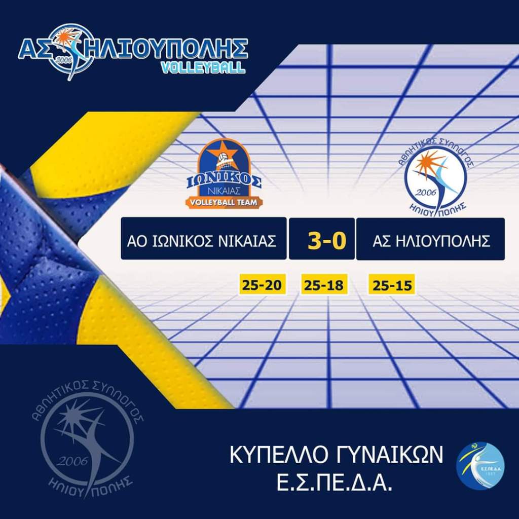 Για την 3η φάση του Κυπέλλου Γυναικών Ε.Σ.ΠΕ.Δ.Α. η ομάδα μας σε νοκ-αουτ αγώνα, ηττήθηκε με 3-0 σετ από την ομάδα ΑΟ Ιωνικός Νίκαιας στο Σελεπίτσαρι και αποκλείστηκε από την επόμενη φάση.