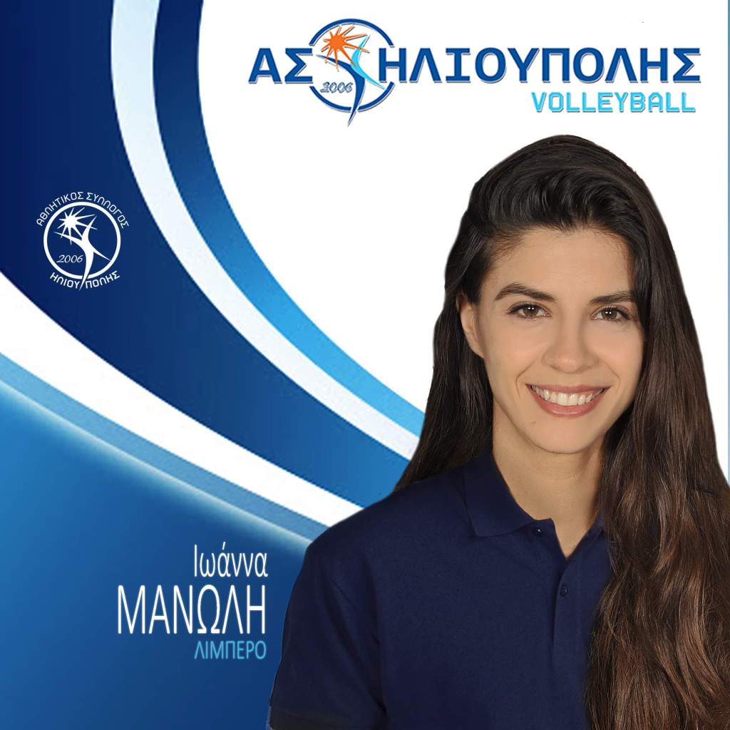 Ο ΑΣ Ηλιούπολης ανακοινώνει την έναρξη της συνεργασίας του με την Ιωάννα Μανώλη, η οποία αγωνίζεται ως λίμπερο. Η 27χρονη αθλήτρια ξεκίνησε το βόλεϊ από τον ΑΓΟΓ Ευρυάλη, ενώ στο παρελθόν έχει αγωνιστεί στη ΓΑΝΣ Ίρις. Η Ιωάννα Μανώλη θα αποτελέσει το δίδυμο των λίμπερο μαζί με την Χριστίνα Μπογιατζή, για τη νέα σεζόν.Ο Σύλλογος την καλωσορίζει και της εύχεται υγεία και καλή αγωνιστική χρονιά! 🏐💙🤙