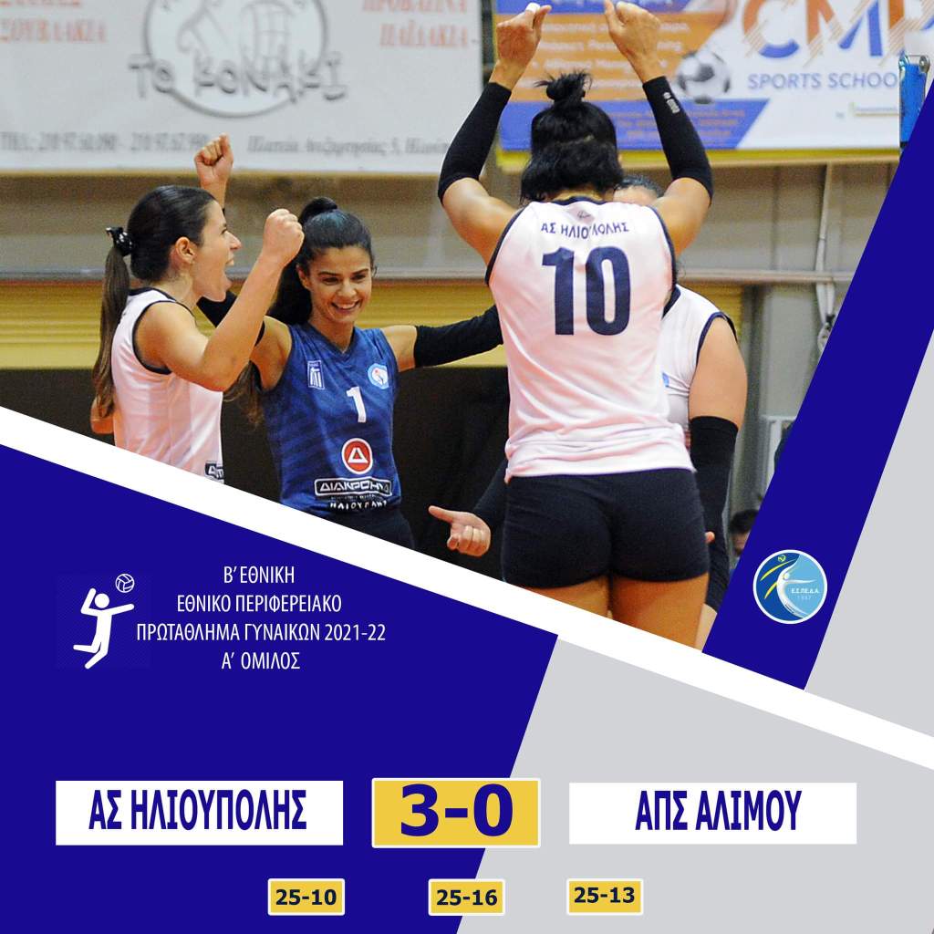 ☑️ΓΥΝΑΙΚΕΣΣτο πλαίσιο της 9ης αγωνιστικής της Α’ φάσης του Πρωταθλήματος Β’ Εθνικής Γυναικών, η ομάδα μας πήρε τη νίκη με 3-0 σετ επί του ΑΠΣ Αλίμου στο Α’ Κλειστό Ηλιούπολης 👏▶Τα σετ: (25-10, 25-16, 25-13)Α.Σ. ΗΛΙΟΥΠΟΛΗΣ (Βασίλης Ξεροβάσιλας): Σταυρούλα Λιαρομάτη (αρχηγός), Μαριάννα Λιαρούτσου, Μελίνα Σταματέλου, Μυρτώ Ξοφάκη, Ειρηάνα Μαυρογένη, Κασμηρία Δημητρίου, Χαρά Μπιτσάκου, Ζωή Τουρνάκη, Αγάπη Φούσκα, Δανάη Βήχου, Έλσα Γρίσπου, Ιωάννα Μανώλη (λ).