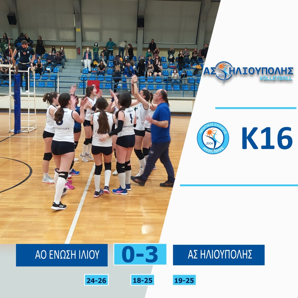 Για την 6η αγωνιστική του πρωταθλήματος Κ16, η ομάδα μας πήρε τη νίκη με 3-0 σετ επί της αντίστοιχης ομάδας ΑΟ Ένωση Ιλίου στο Κλειστό Ιλίου Γ. Κακούρης ![]()
