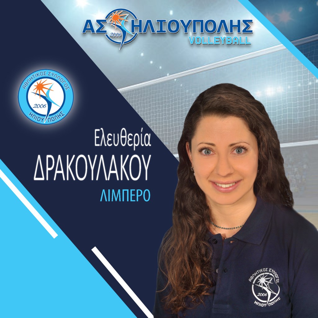 Η Ελευθερία Δρακουλάκου αγωνίζεται ως λίμπερο και θα είναι η τρίτη της θητεία στην ομάδα, στην οποία αγωνίστηκε τη διετία 2013-2015 και τη σεζόν 2019-2020. Ξεκίνησε το βόλεϊ από τον ΑΟ Τραχώνων και στο παρελθόν έχει αγωνιστεί σε ΑΟ Νέοι Βύρωνος, ΑΕ Ίκαρος Καλλιθέας, ΠΑΟ Κουκάκι, ΑΣ ΠΕΡΑ ενώ στον ελεύθερο χρόνο της ασχολείται με το μπιτς βόλεϊ.