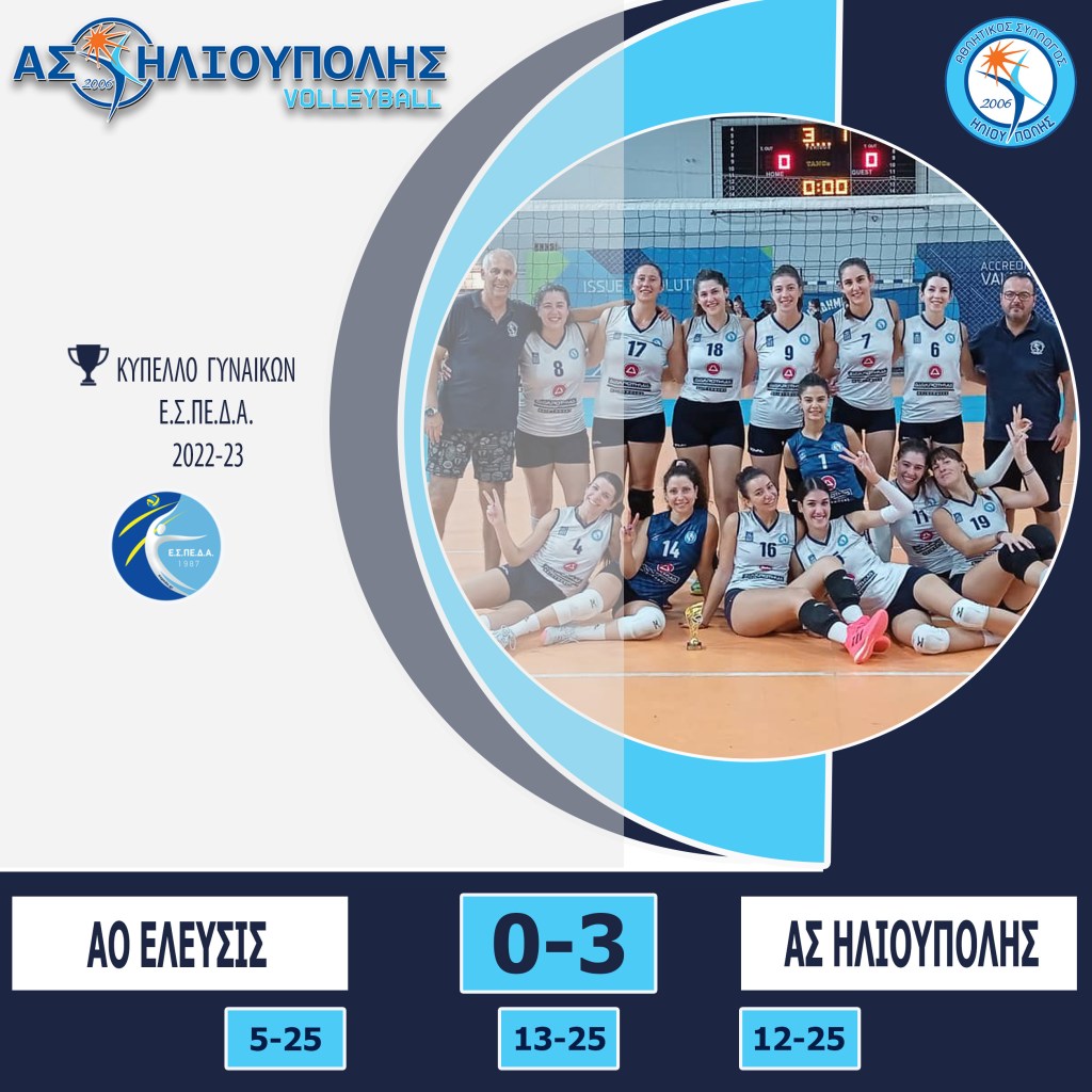 Για την 1η αγωνιστική του Κυπέλλου Γυναικών Ε.Σ.ΠΕ.Δ.Α. η ομάδα μας, σε νοκ-αουτ αγώνα, νίκησε με 3-0 σετ στο κλειστό του 2ου-4ου Γυμνασίου Ελευσίνας την ομάδα ΑΟ Ελευσίς και πήρε την πρόκριση για την επόμενη φάση👏
