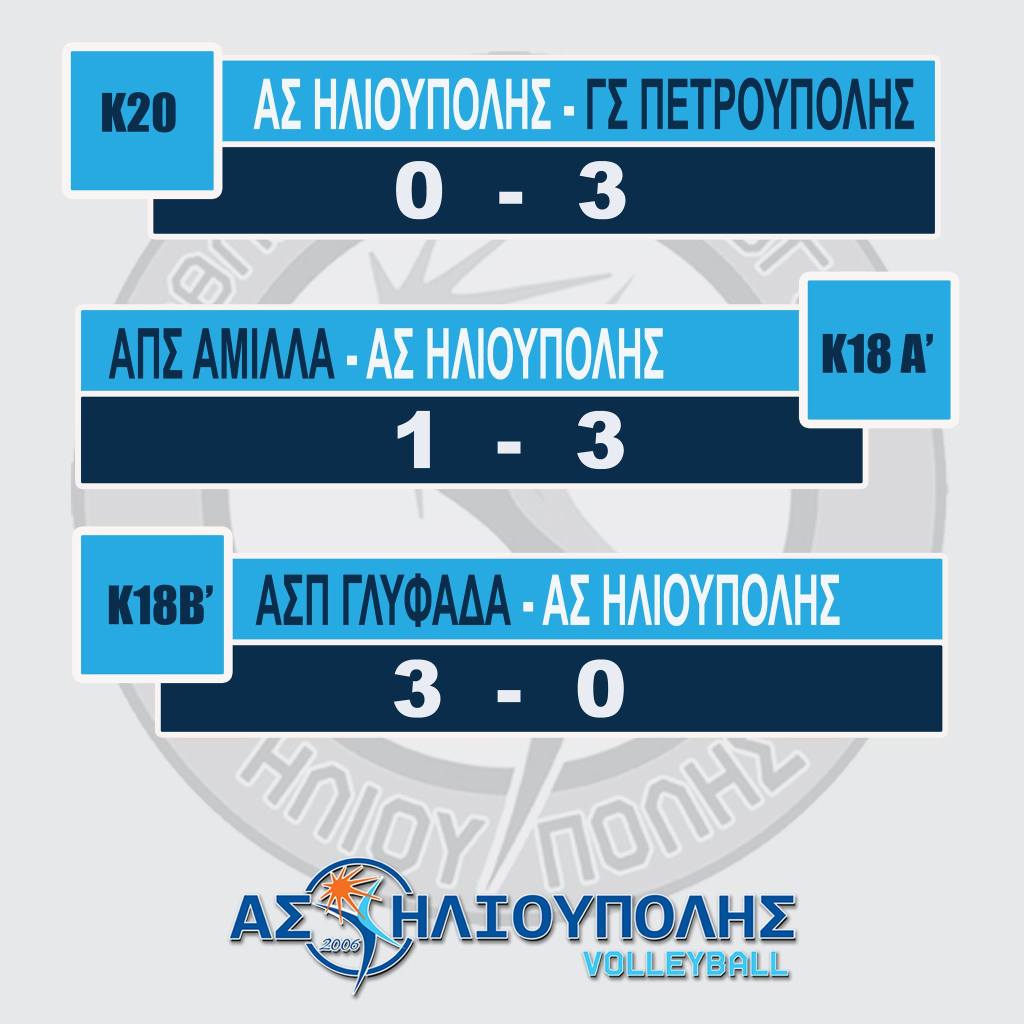 Για τη 2η αγωνιστική του πρωταθλήματος Κ20, η ομάδα μας ηττήθηκε με 3-0 σετ από την αντίστοιχη ομάδα ΓΣ Πετρούπολης στο κλειστό του 5ου Δημοτικού Ηλιούπολης.