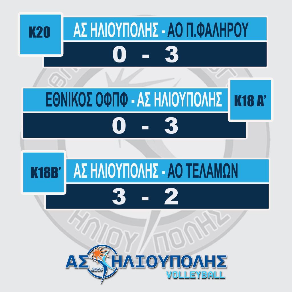 Για την 3η αγωνιστική των αγώνων κατάταξης (θέσεις 13-18) του πρωταθλήματος Κ20, η ομάδα μας ηττήθηκε με 3-0 σετ από την αντίστοιχη ομάδα ΑΟ Π. Φαλήρου στο κλειστό του 5ου Δημοτικού Ηλιούπολης.