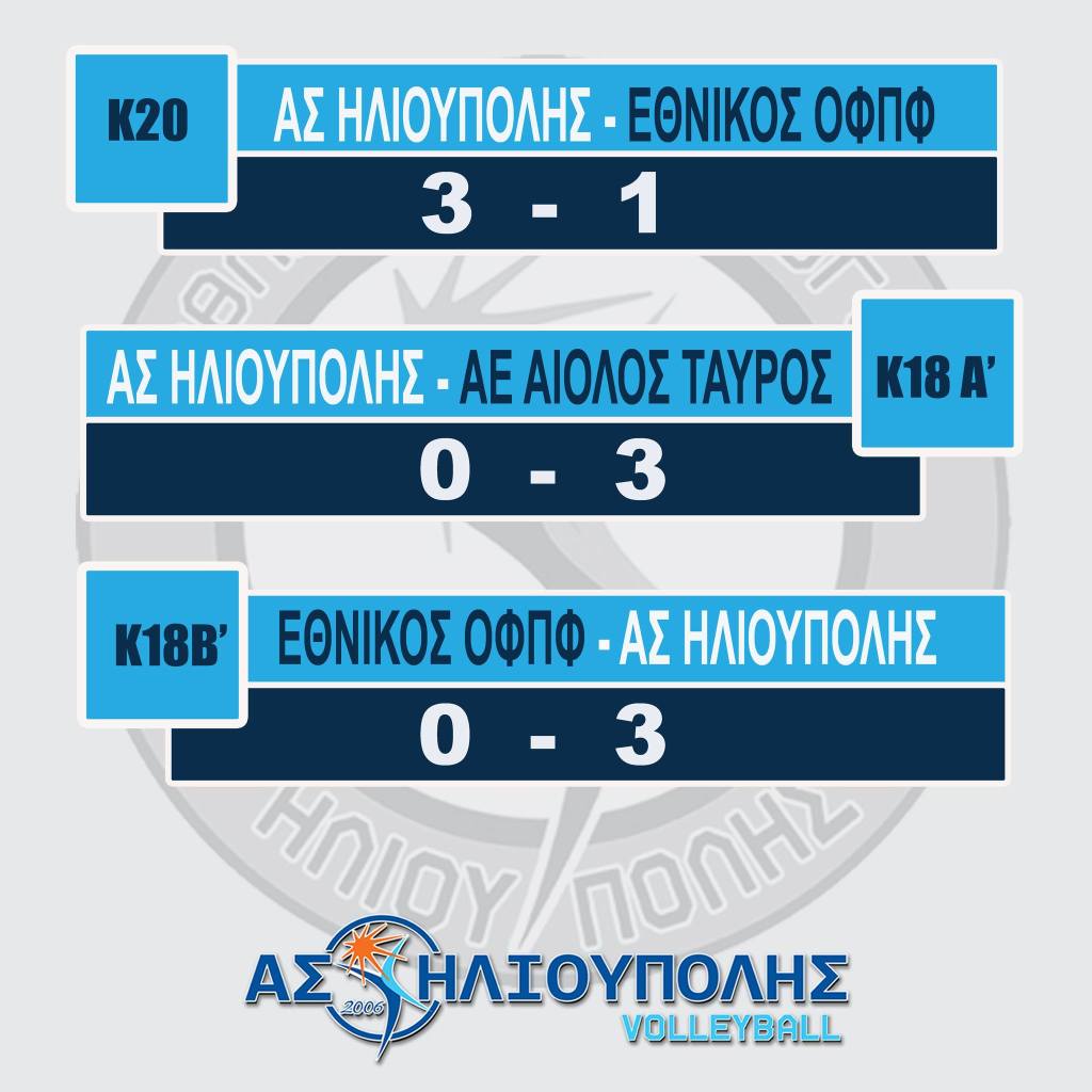 Για τη 14η αγωνιστική του πρωταθλήματος Κ18 Α’ η ομάδα μας, γνώρισε την ήττα με 3-0 σετ από την αντίστοιχη ομάδα ΑΕ Αίολος Ταύρος στο κλειστό του 5ου Δημοτικού Ηλιούπολης.