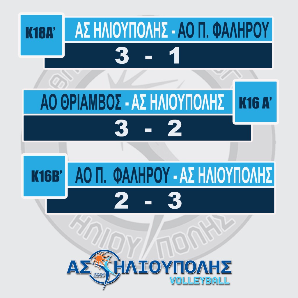 Για τη 16η αγωνιστική του πρωταθλήματος Κ18 Α’ η ομάδα μας επικράτησε με 3-1 σετ επί της αντίστοιχης ομάδας ΑΟ Π. Φαλήρου στο κλειστό του 5ου Δημοτικού Ηλιούπολης. ![]()