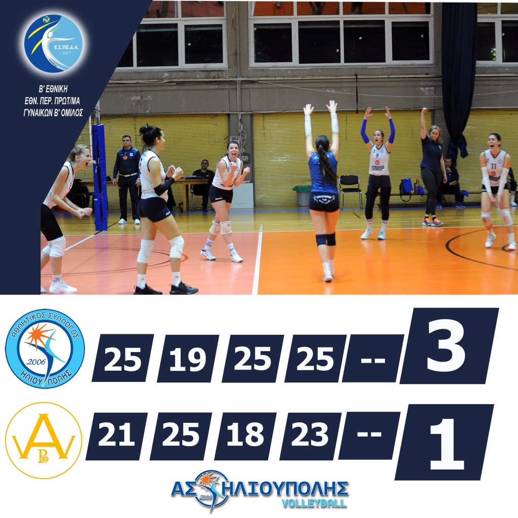Στο πλαίσιο της 19ης αγωνιστικής του Πρωταθλήματος Β’ Εθνικής Γυναικών, η ομάδα μας, επικράτησε με 3-1 σετ επί της αντίστοιχης ομάδας ΑΓΣ Άρτεμις στο Α’ Κλειστό Ηλιούπολης.![]()