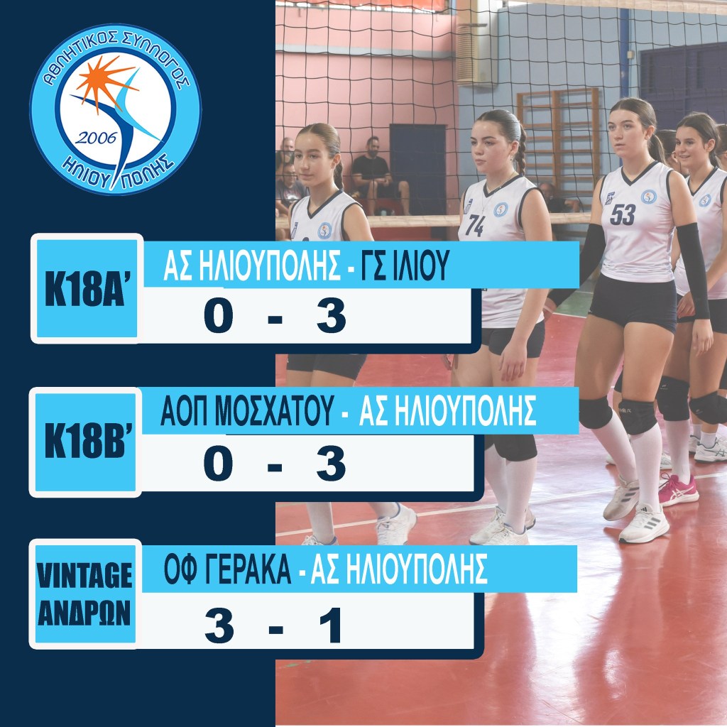 Για τη 10η αγωνιστική του πρωταθλήματος Κ18 Α’ η ομάδα μας ηττήθηκε με 3-0 σετ από την αντίστοιχη ομάδα ΓΣ Ιλίου στο κλειστό του 5ου Δημοτικού Ηλιούπολης.