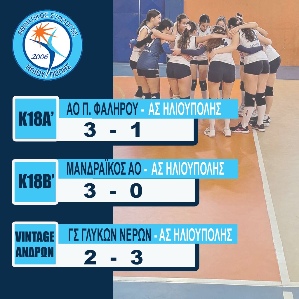 Για τη12η αγωνιστική του πρωταθλήματος Κ18 Α’ η ομάδα μας, γνώρισε την ήττα με 3-1 σετ από την αντίστοιχη ομάδα ΑΟ Π. Φαλήρου στο κλειστό του 2ου Λυκείου Π. Φαλήρου.