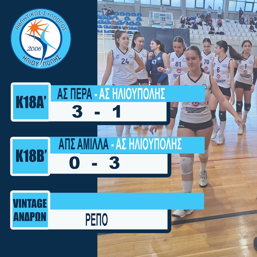 Για την 8η αγωνιστική της Β’ Φάσης (Θέσεις 21-29) του πρωταθλήματος, η ομάδα μας Κ18Β’ επικράτησε με 3-0 σετ επί της αντίστοιχης ομάδας ΑΠΣ Άμιλλα στο Νέο Κλειστό Καματερού.