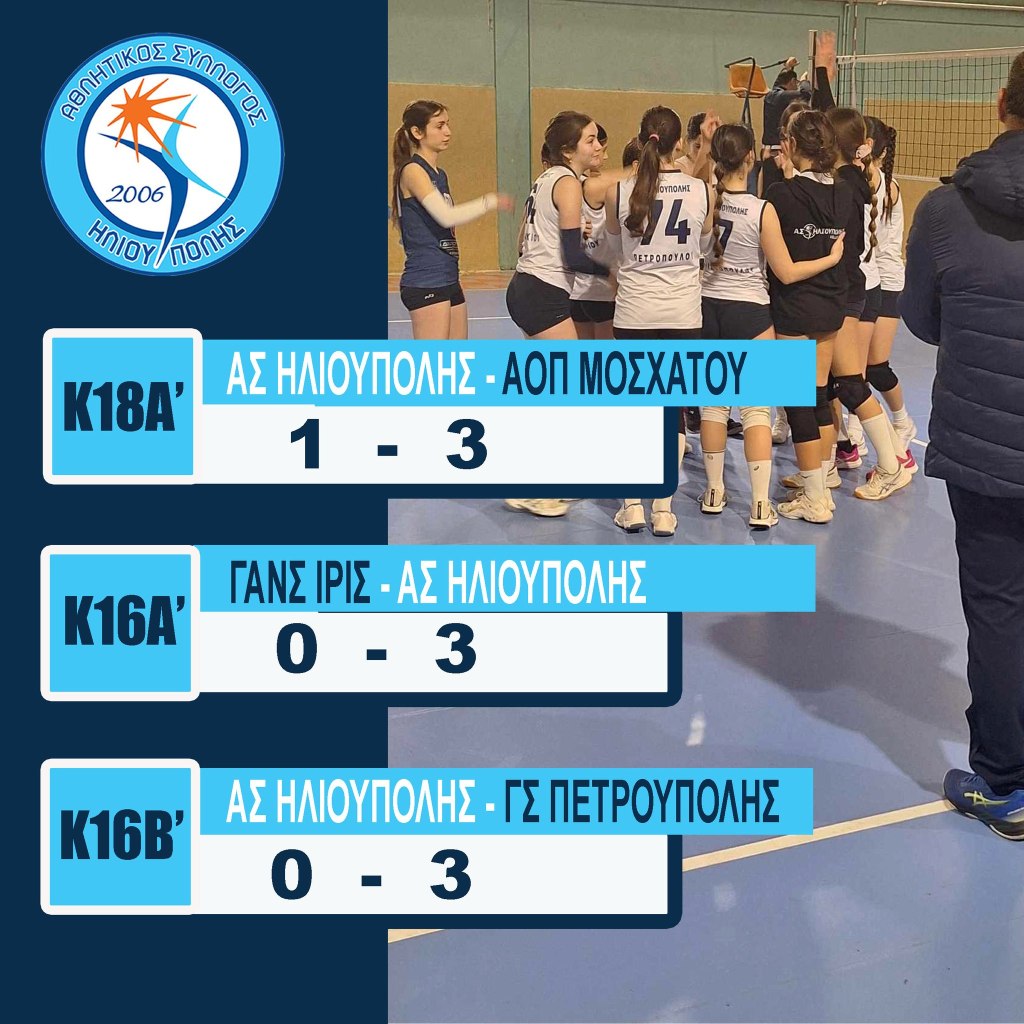 Για τη 17η αγωνιστική του πρωταθλήματος Κ18Α’ η ομάδα μας, ηττήθηκε με 3-1 σετ από την αντίστοιχη ομάδα ΑΟΠ Μοσχάτου στο κλειστό του 5ου Δημοτικού Ηλιούπολης.