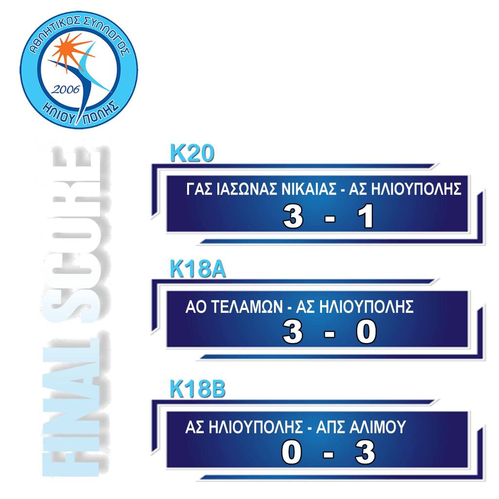 Για την 3η αγωνιστική του πρωταθλήματος Κ18Β’, η ομάδα μας γνώρισε την ήττα με 3-0 σετ απέναντι στην αντίστοιχη ομάδα ΑΠΣ Αλίμου στο κλειστό του 5ου Δημοτικού Ηλιούπολης.