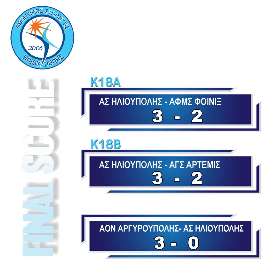 Για την 14η αγωνιστική του πρωταθλήματος Κ18Α’ η ομάδα μας, πήρε τη νίκη με 3-2 σετ απέναντι στην αντίστοιχη ομάδα ΑΦΜΣ Φοίνιξ στο κλειστό του 5ου Δημοτικού Ηλιούπολης.👏💙